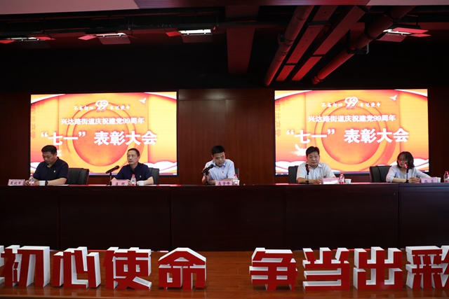 2020年6月30日上午9點(diǎn),興達(dá)路街道黨工委召開了慶祝建黨99周年暨七一表彰大會,表彰了先進(jìn)基層黨組織、學(xué)習(xí)型黨組織、區(qū)域化黨建先進(jìn)單位、優(yōu)秀共產(chǎn)黨員、優(yōu)秀黨務(wù)工作者和學(xué)習(xí)型黨員。