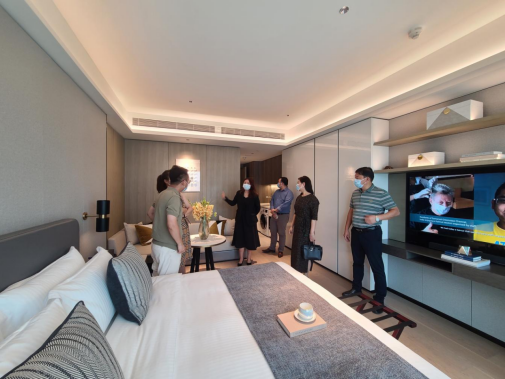 曉曦總一行對三家物業的房型、多功能廳、游泳池、后勤區等主要區域進行了考察,詳細詢問了三家物業的戶型配比、客戶群體、入住率、價格等信息,并進一步明確了公寓項目定位、配套及裝修標準:配套區域要采用“雅詩閣品牌”的裝修標準,用優質配套鎖住客戶;客房區域要采用“盛捷品牌”的裝修標準,在滿足客戶需求基礎上降低成本;員工食堂、休息區等要在以上三家物業的現有標準之上進行提升,提高員工歸屬感,激發員工忠誠度。