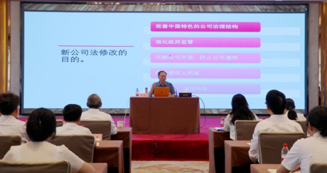 為提升企業合規經營能力,有效規避經營風險,集團公司于7月6日組織開展了專題法務培訓,深入學習貫徹最新修訂的《中華人民共和國公司法》,集團公司中高管、各成員企業班子成員及相關業務人員等參與了本次培訓。
