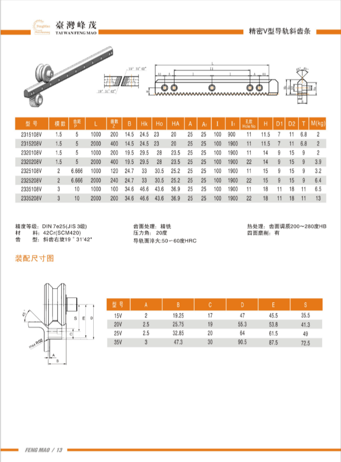 V型導(dǎo)軌斜齒條DIN7級